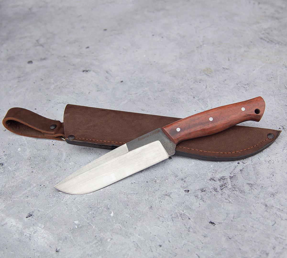 Цельнометаллический нож №2 из кованной нержавеющей стали 110Х18, рукоять - бубинга, кожаный чехол идет в комплекте.