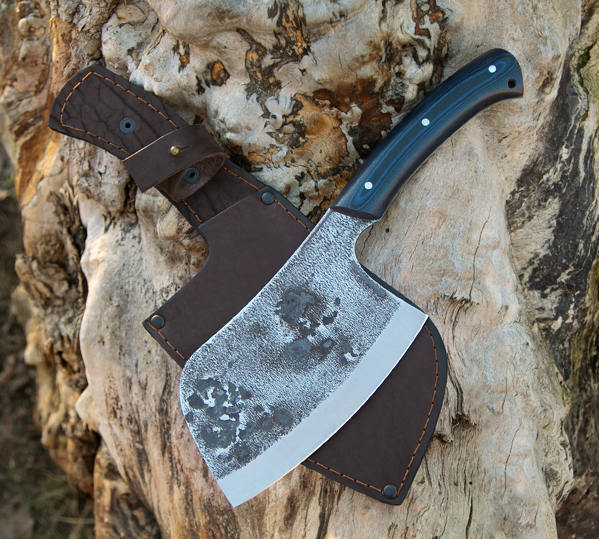 Тяпка №15 из кованной нержавеющей стали 110Х18, рукоять - G10, кожаный чехол в комплекте.